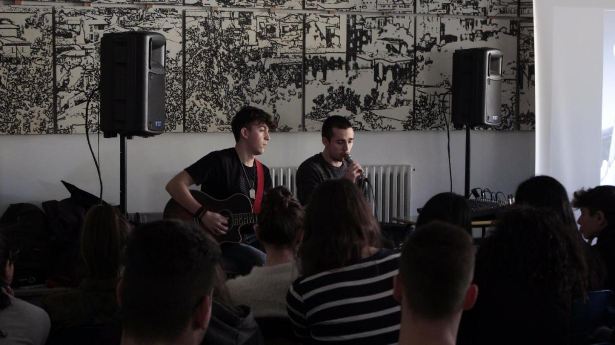 Le parole e le spiegazioni hanno, poi, lasciato spazio alla musica, alle immagini, alla poesia dei testi di Lucio Dalla, in un mix straordinario di emozioni e suggestioni, suscitate dalle note di alcuni pezzi del cantautore bolognese straordinariamente interpretati da Marco Piccioni (chitarra) e Paolo Travaglini (voce), alternate ai video realizzati dai partecipanti al progetto (dei 14 video realizzati ne sono stati scelti per l’occasione 5). Si è iniziato con la versione chitarra e voce di “Caruso” che ha subito contribuito a creare la giusta atmosfera.